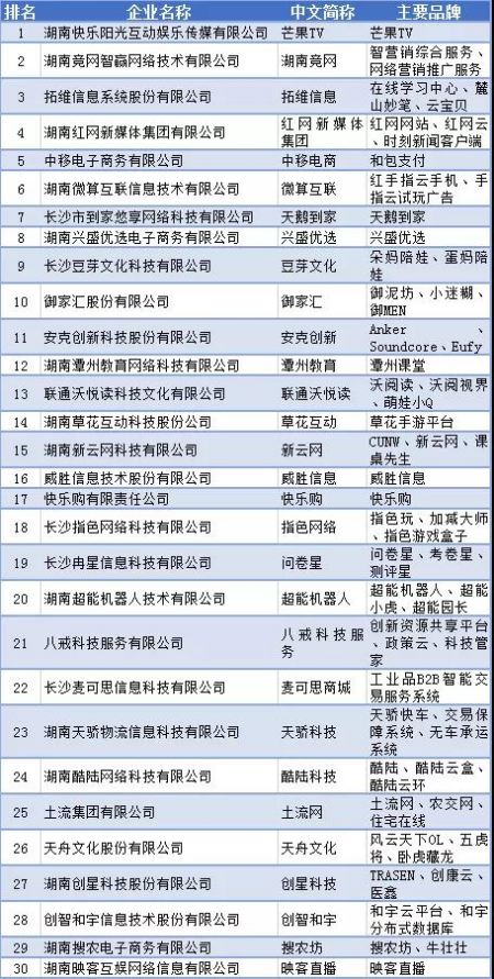 2020年湖南省互聯(lián)網(wǎng)企業(yè)綜合實力30強榜單
